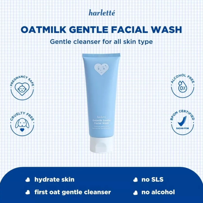 Harlette Oatmilk Gentle Facial Wash | Sensitive, Dry, Combination, Irritated Skin, Membersihkan & Mencerahkan